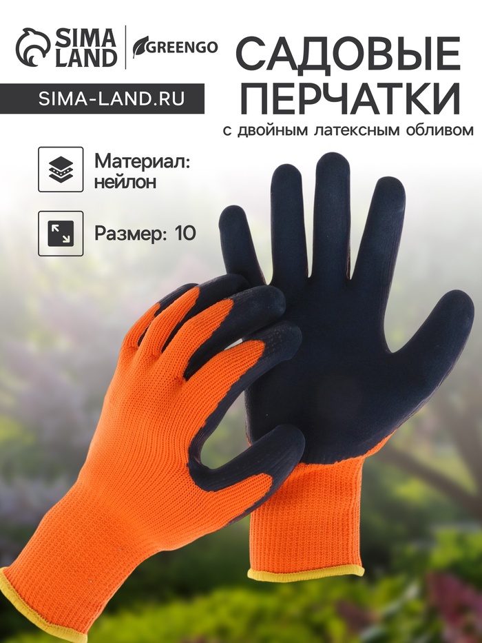 Перчатки садовые, нейлоновые, утеплённые до -20°С, с двойным латексным обливом, размер 10, Greengo