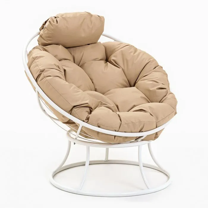 Кресло садовое «Папасан», 81×68×77 см, с бежевой подушкой, белое