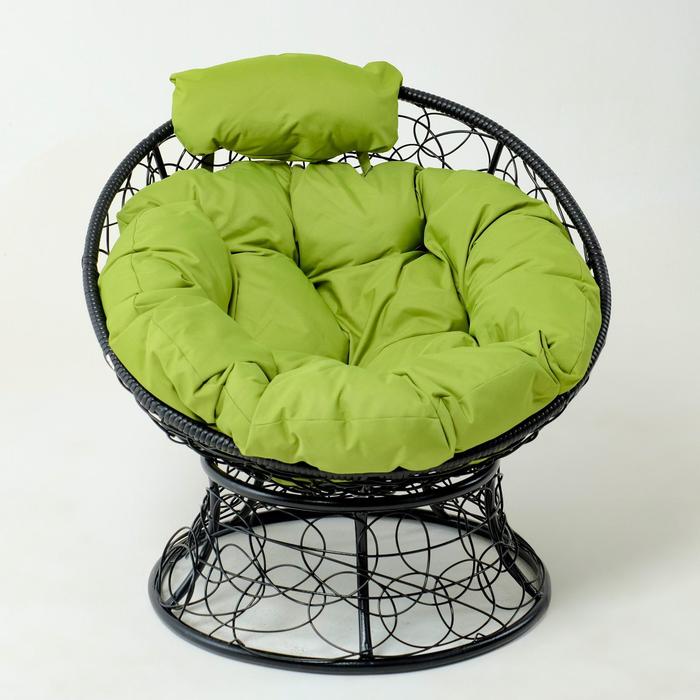 Кресло «Пончик», 55×40×61 см, с зелёной подушкой, чёрное