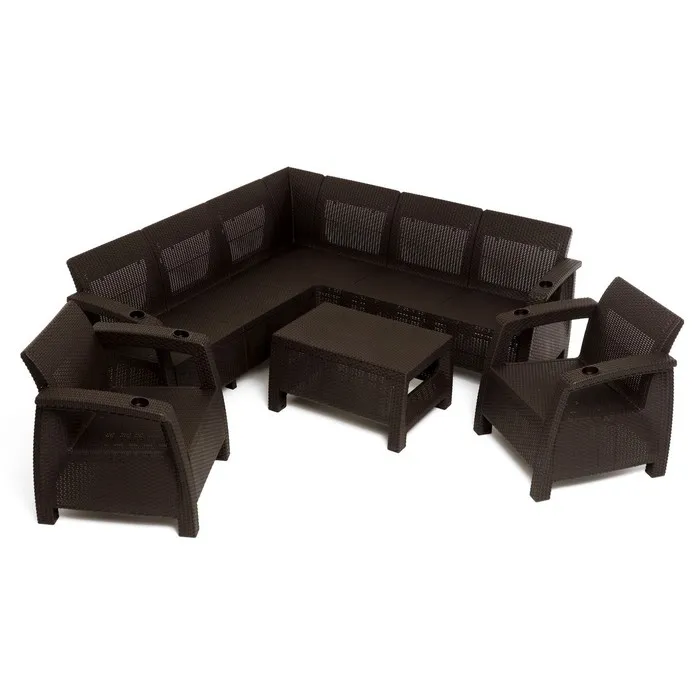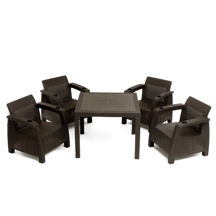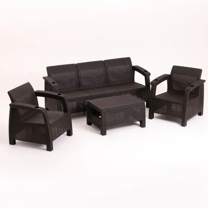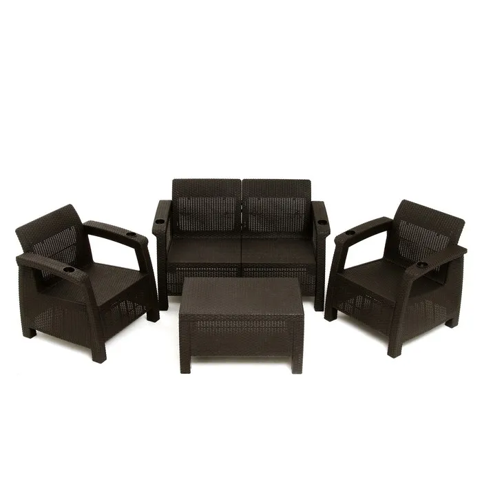 Набор садовой мебели: диван трехместный, 2 кресла, стол, цвет мокко