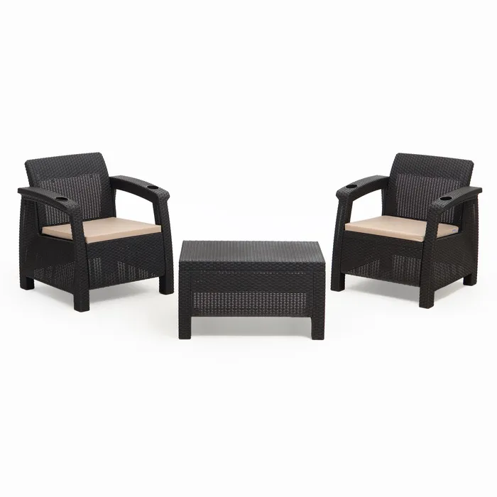 Набор садовой мебели "Калифорния" 3 предмета: 2 кресла, стол, темно-коричневый