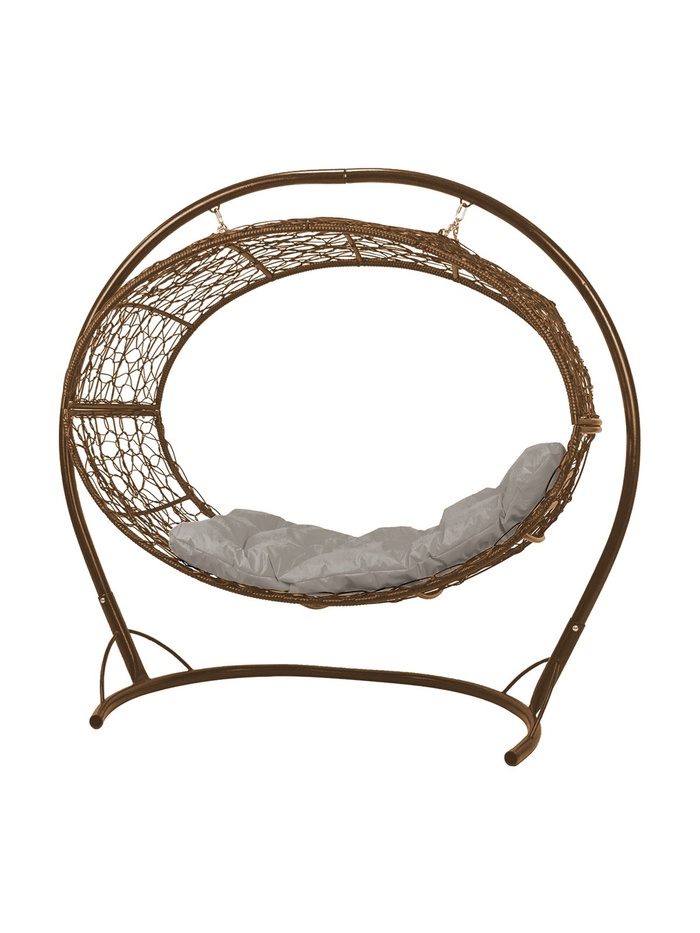 Подвесное кресло - кокон «Венера», с искусственным ротангом, 180×77×164 см, коричневое, серая подушка