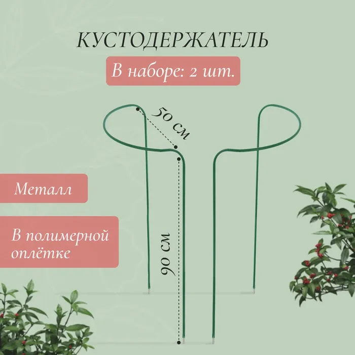 Кустодержатель, d=50 см, h=90 см, ножка d=0.3 см, металл, набор 2 шт., зелёный
