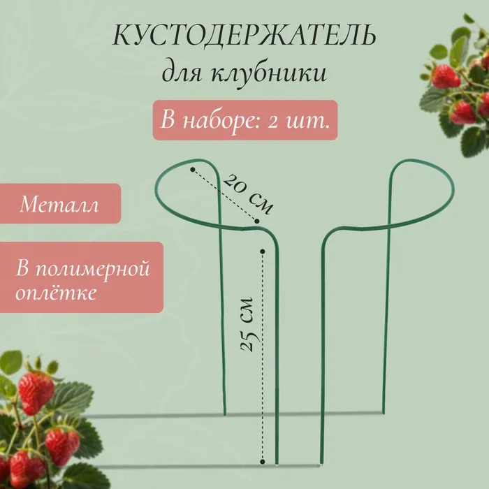 Кустодержатель для клубники, d=20 см, h=25 см, ножка d=0.3 см, металл, зелёный