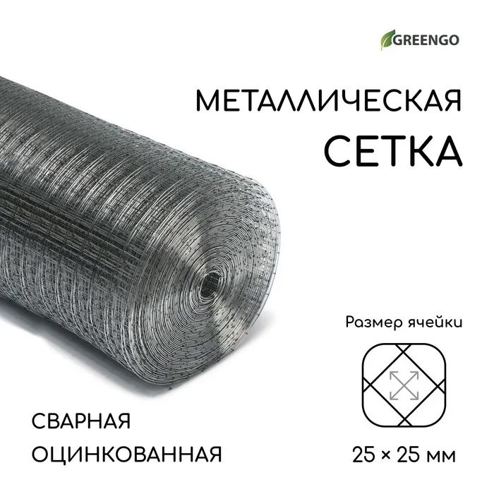 Сетка оцинкованная, сварная, 25×1 м, ячейка 25×25 мм, d=1 мм, Greengo