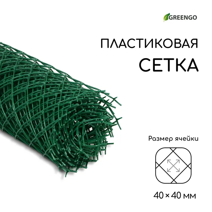 Сетка садовая, 1×10 м, ячейка ромб 40×40 мм, пластиковая, зелёная, Greengo, в рулоне