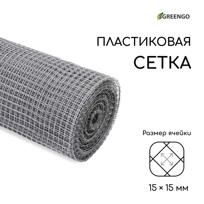 Сетка садовая, 1×20 м, ячейка ромб 15×15 мм, пластиковая, серая, Greengo, в рулоне