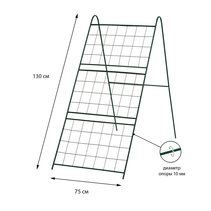 Шпалера, 130 × 75 × 1 см, металл, зелёная, «Сетка под огурцы»