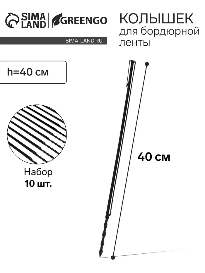Колышек, h=40 см, набор 10 шт., чёрный, Greengo