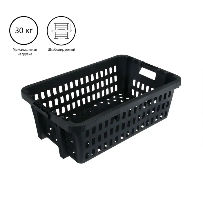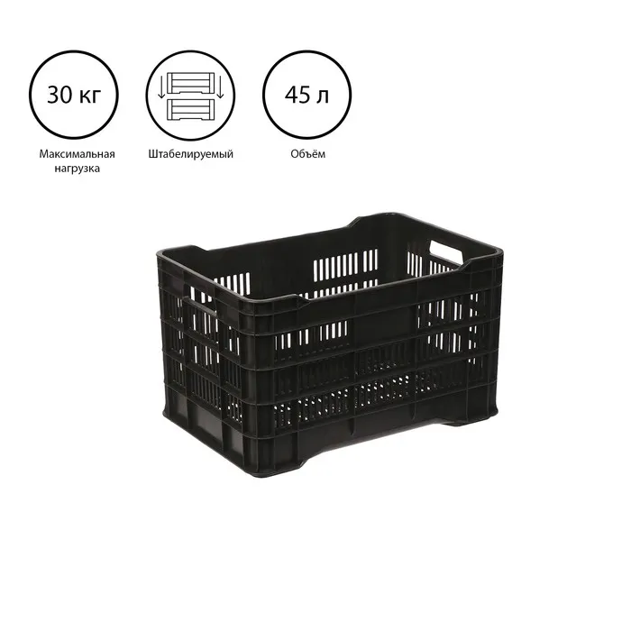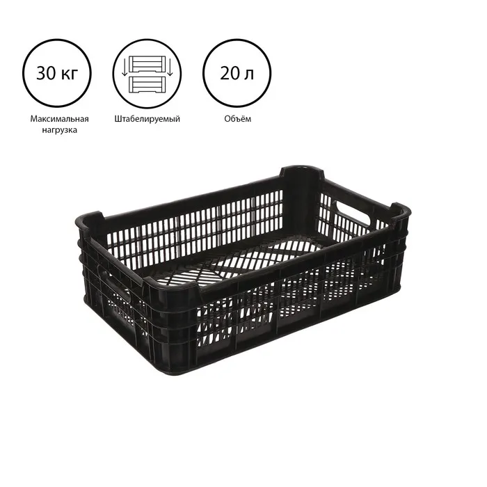 Ящик универсальный, пластиковый, 60×40×20 см, на 30 кг, чёрный