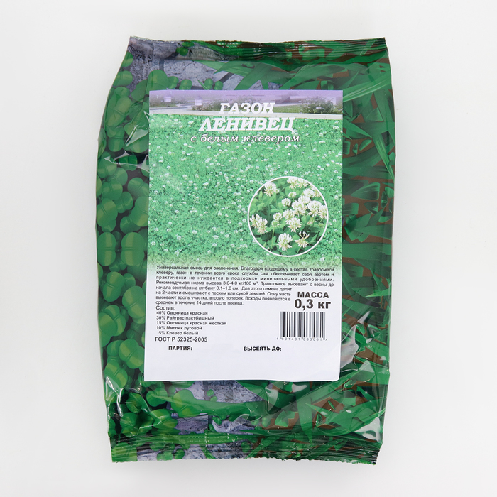 Семена Газон "Ленивец с белым клевером", ц/п, 0,3 кг