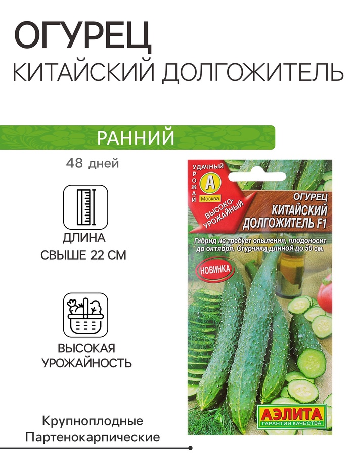 Семена Огурец "Китайский долгожитель" F1 партенокарпический, 10 шт