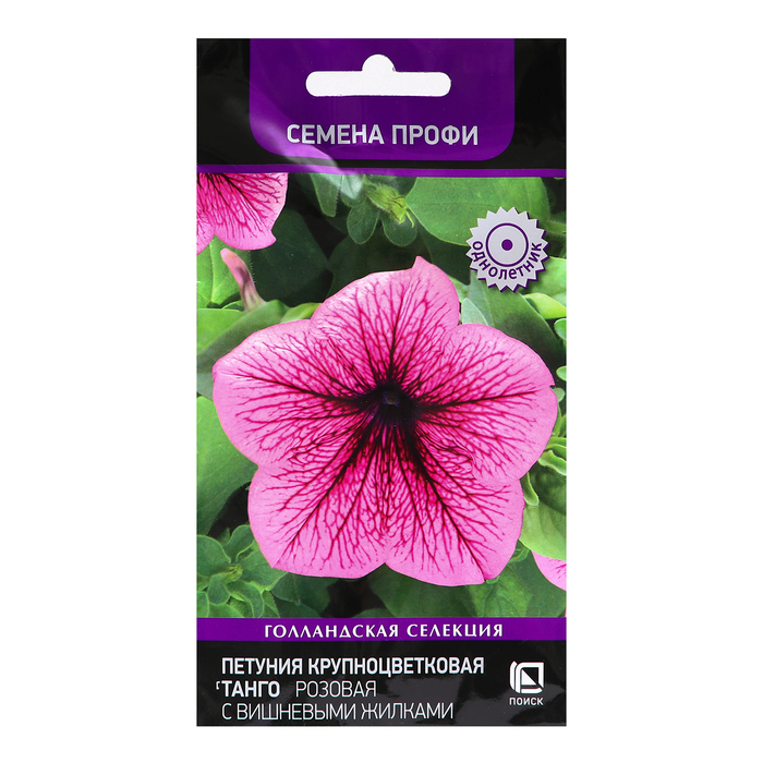 Семена цветов Петуния крупноцветковая "Танго", Розовая с вишневыми жилками, 15шт