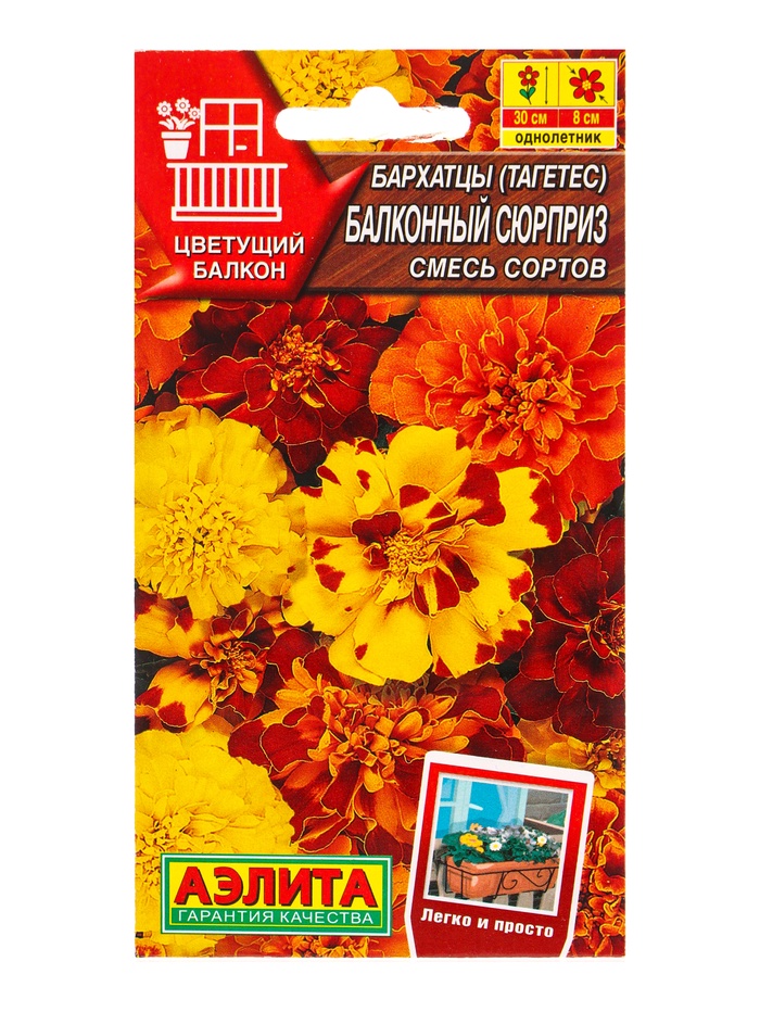 Семена цветов Бархатцы Балконный сюрприз, смесь сортов Цветущий балкон, Ц/П,7 шт.