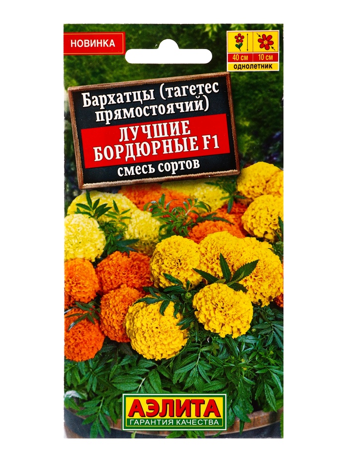 Семена цветов Бархатцы Лучшие бордюрные F1 прямостоячие, смесь сортов , Ц/П,10 шт.