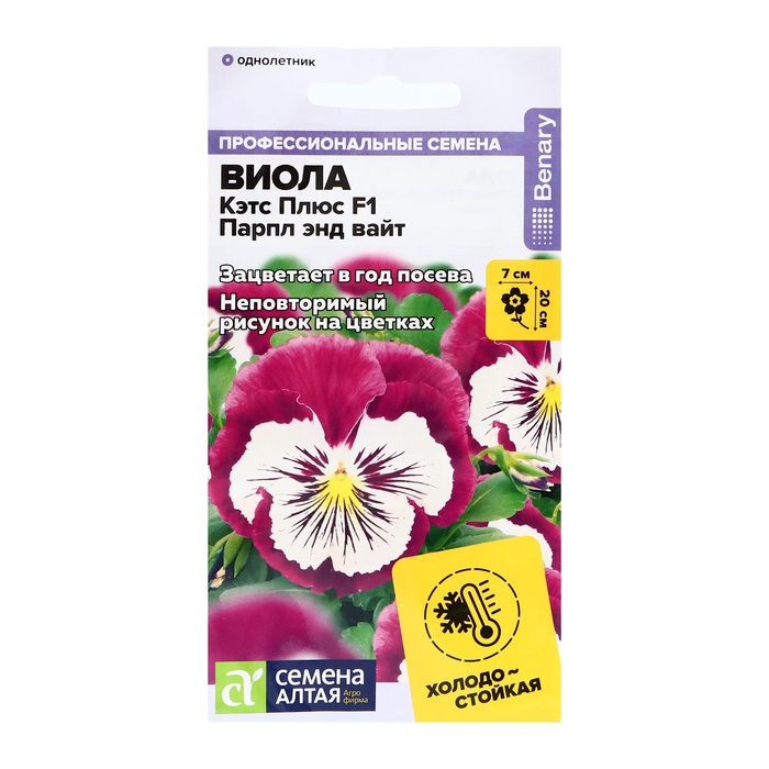 Семена цветов Виола «Кэтс Плюс - парпл энд вайт», F1, 4 шт., «Семена Алтая»