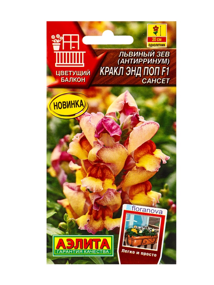 Семена цветов Львиный зев Кракл энд поп F1 сансет С. Floranova Цветущий балкон, Ц/П,7 шт.