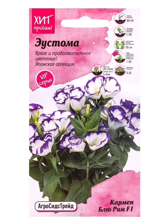 Семена цветов Эустома Кармен Блю Рим 5 шт