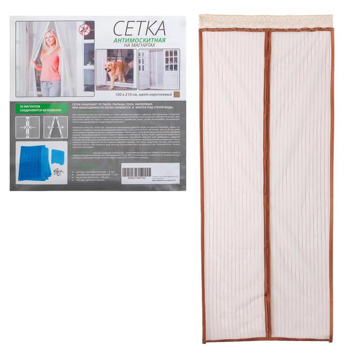 Сетка антимоскитная для дверей, 100 × 210 см, на магнитах, цвет коричневый