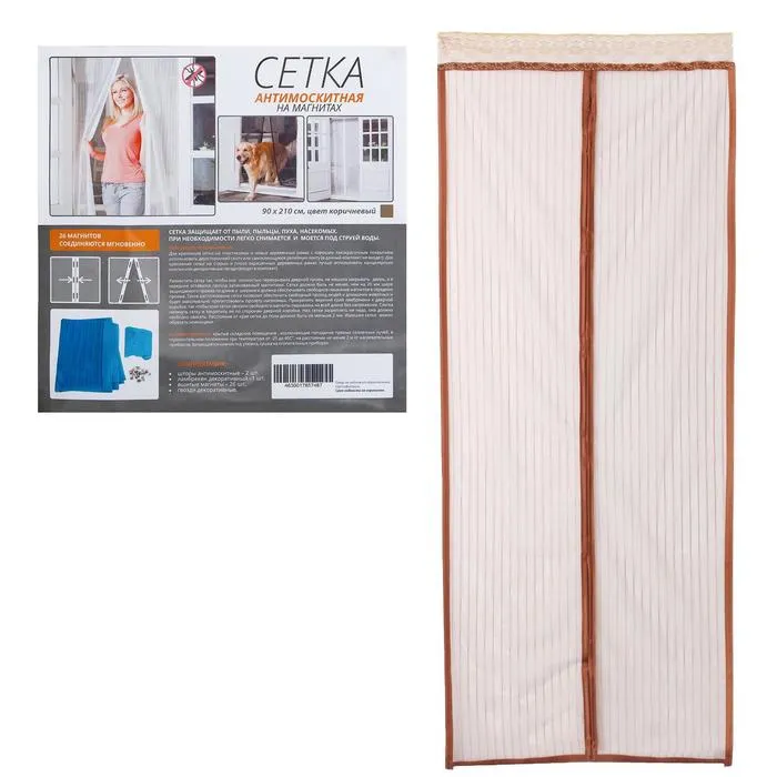 Сетка антимоскитная для дверей, 90 × 210 см, на магнитах, цвет коричневый