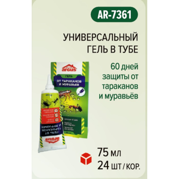 Гель от тараканов и муравьев ARGUS, универсальный, туба, 75 мл