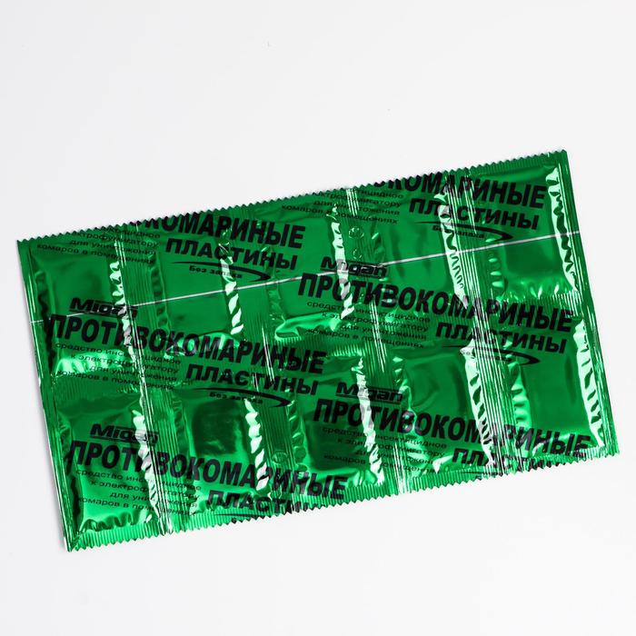Пластины от комаров, без запаха, зеленые, 10 шт