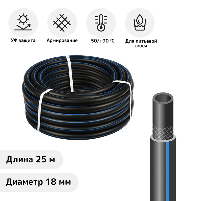 Шланг поливочный морозостойкий, ТЭП, 18 мм, 25 м, армированный, «Стандарт Проф»