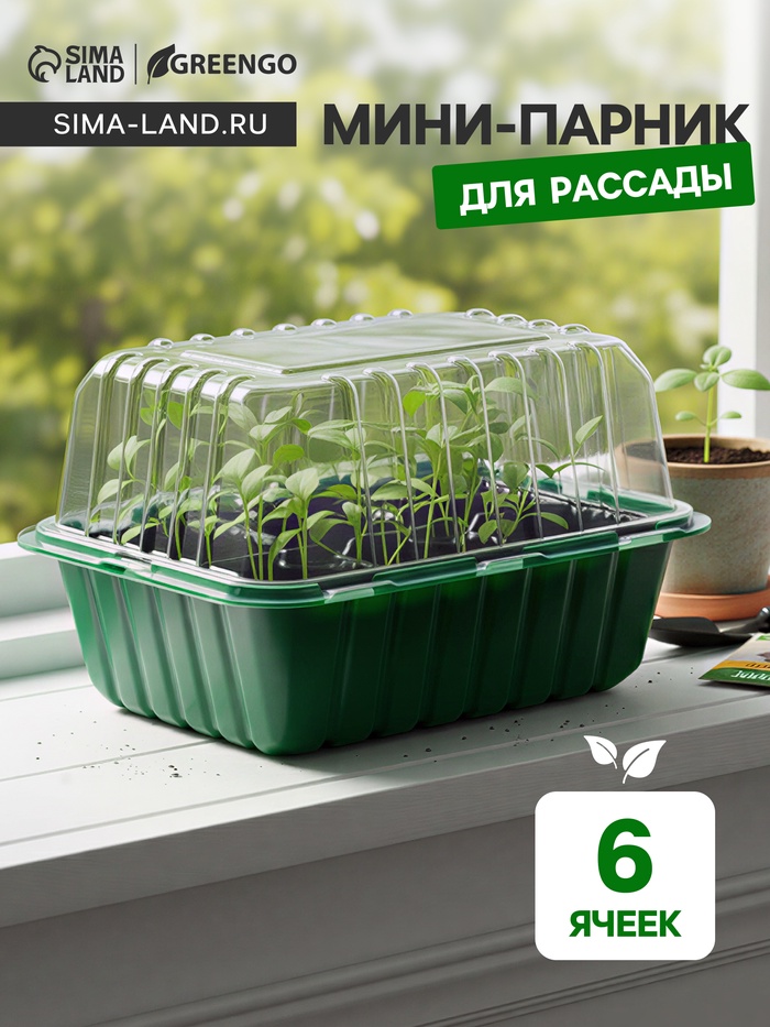 Мини - парник для рассады, 21.5×17×14 см, 6 ячеек, с крышкой, Greengo