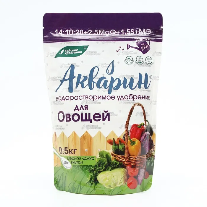 Удобрение комплексное водорастворимое Акварин "Для овощей", 0,5 кг