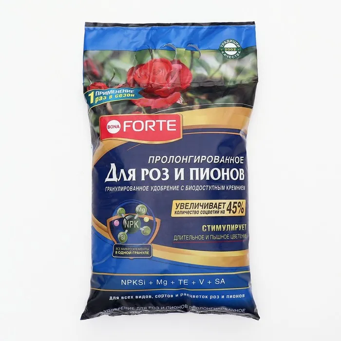 Удобрение Bona Forte для роз и пионов с биодоступным кремнием, гранулы, пакет, 2,5 кг