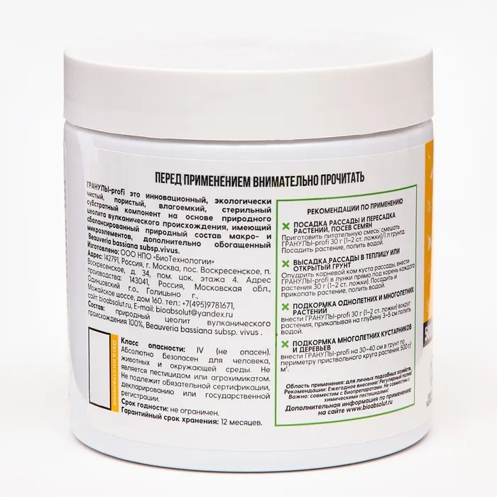 Почвоулучшитель на основе циолита гранулы Profi - Боверия Бассиана Profi, 500 гр