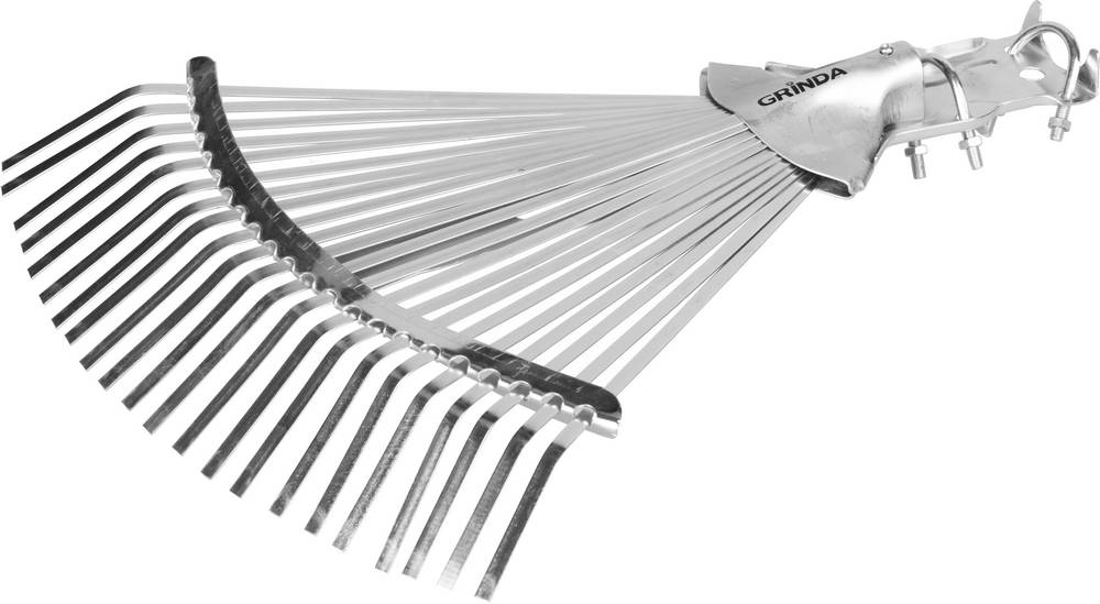 GRINDA GR-44RX, 22 плоских зубца, 300-440 мм ширина, оцинкованная сталь, без черенка, усиленные, регулируемые веерные грабли (421873)