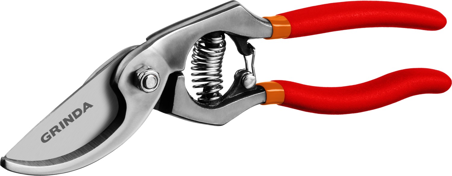 GRINDA G-7, 210 мм, высокоуглеродистая сталь, направленное под углом лезвие, цельнокованый, покрытие ПВХ, плоскостной секатор (423107)