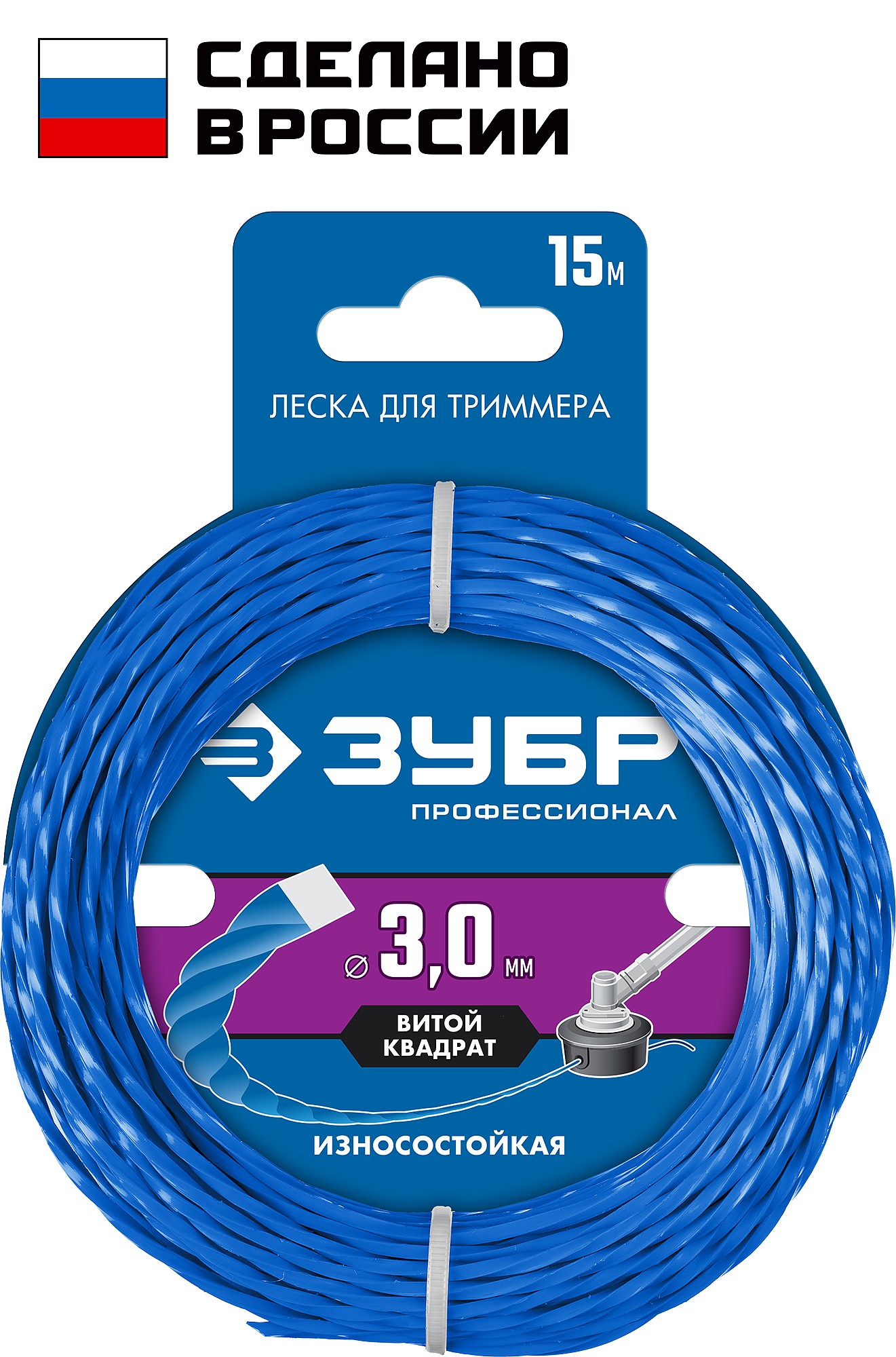 ЗУБР ВИТОЙ КВАДРАТ, 3.0 мм, 15 м, леска для триммера, Профессионал (71030-3.0)