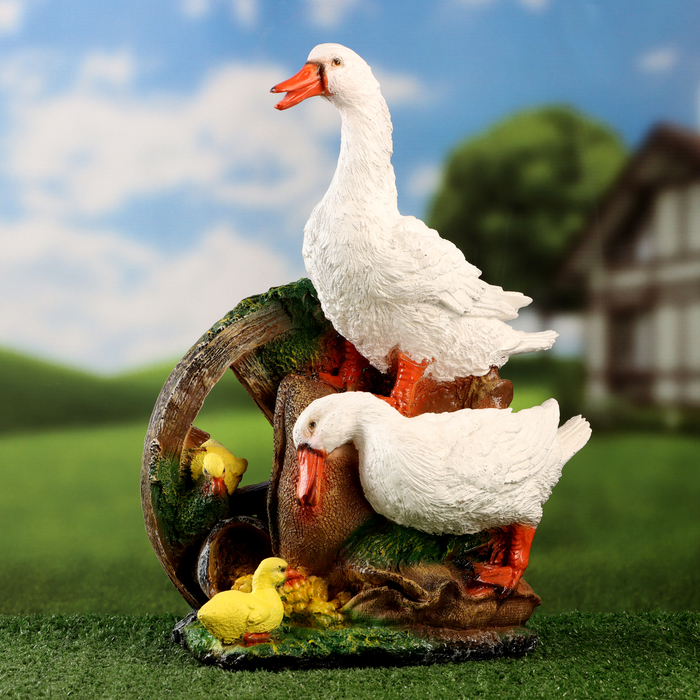 Садовая фигура из полистоуна «Гусиная семья на колесе», 41×30 см