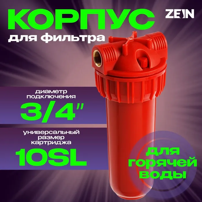 Корпус для фильтра ZEIN, 10SL, 3/4", для горячей воды, ключ, крепление