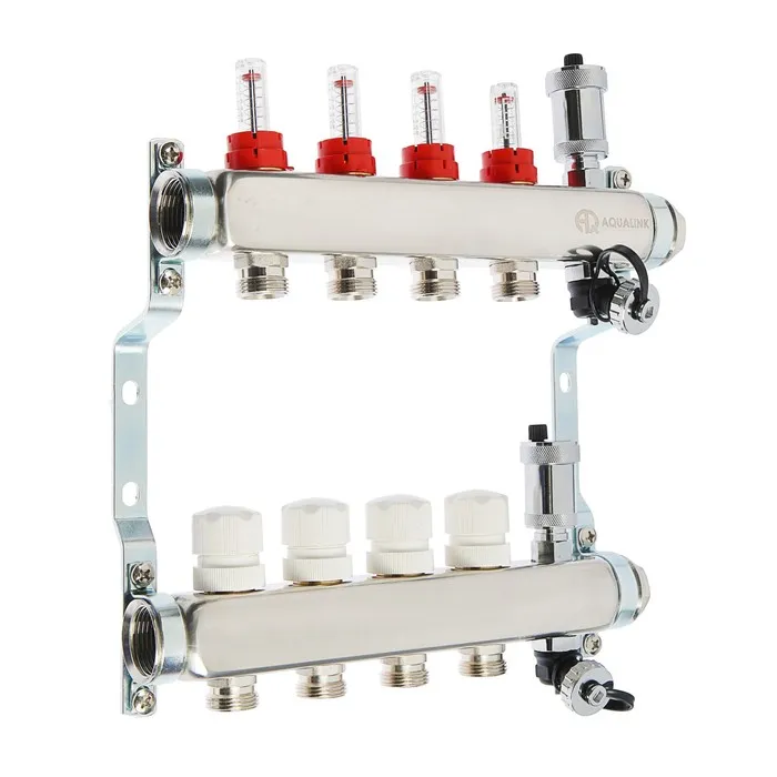 Коллекторная группа AQUALINK, 1"х3/4", 4 выхода, с расходомерами, нержавеющая сталь