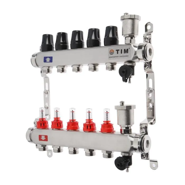 Коллекторная группа TIM KCS5005, 1" х 3/4", 5 выходов, расходомеры, без кранов, нерж. сталь