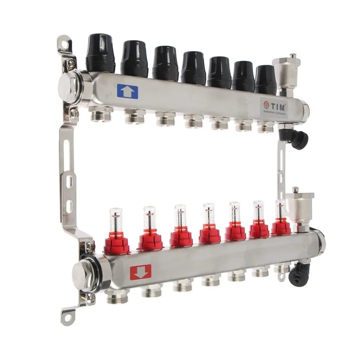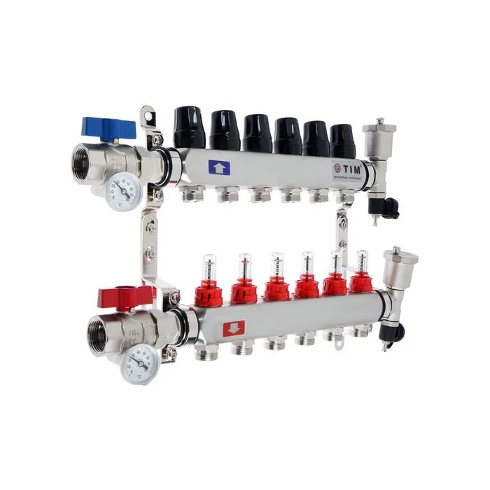 Коллекторная группа TIM KAS5006, 1" х 3/4", 6 выходов, с расходомерами, нержавеющая сталь