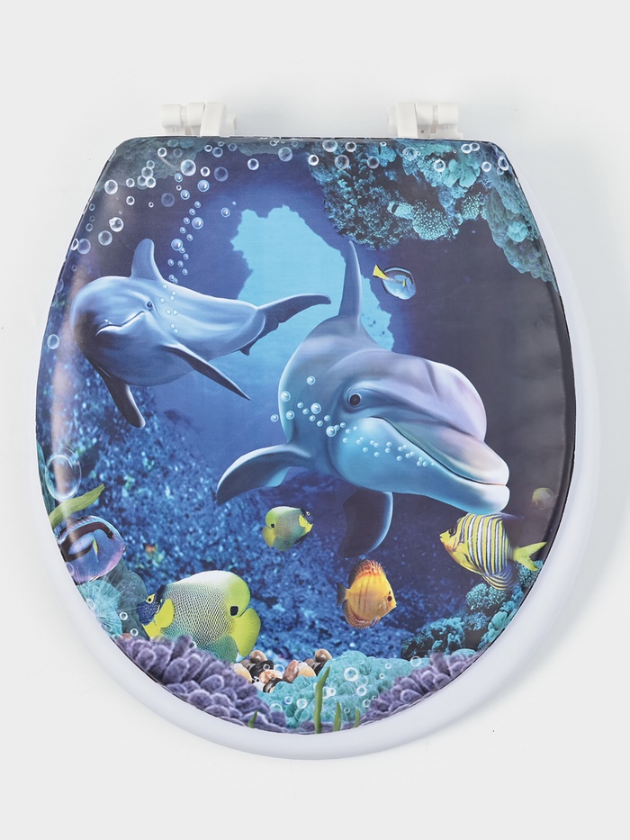 Сиденье для унитаза с крышкой Доляна «Морские жители», 40×37 см, мягкое