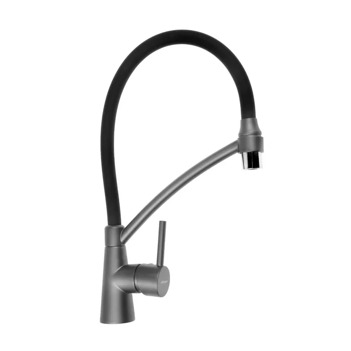 Смеситель для кухни Accoona A4890TF-2, однорычажный, силиконовый излив, черный, графит