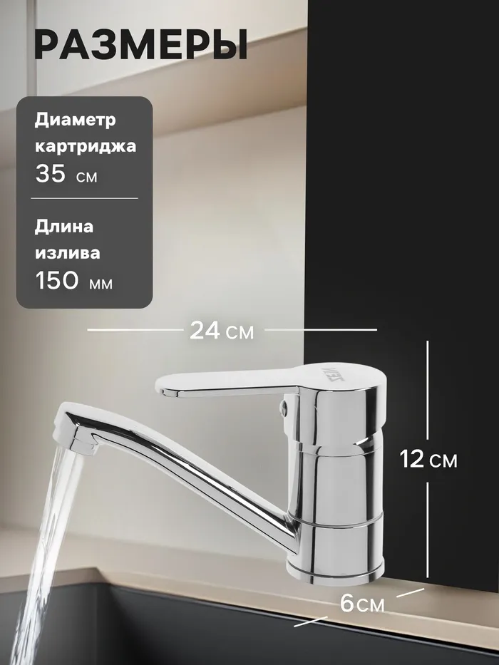 Смеситель для кухни ZEIN Z50152, однорычаж., картридж 35 мм, излив 15 см, без подводки, хром