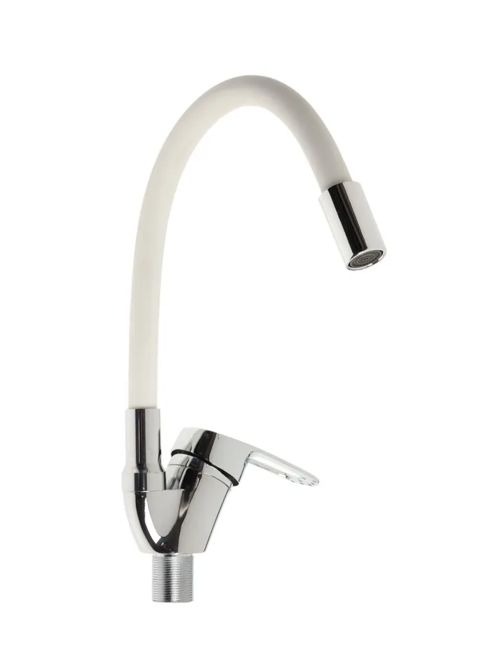 Смеситель для кухни ZEIN Z2110, однорычажный, гибкий излив, картридж 40 мм, белый/хром