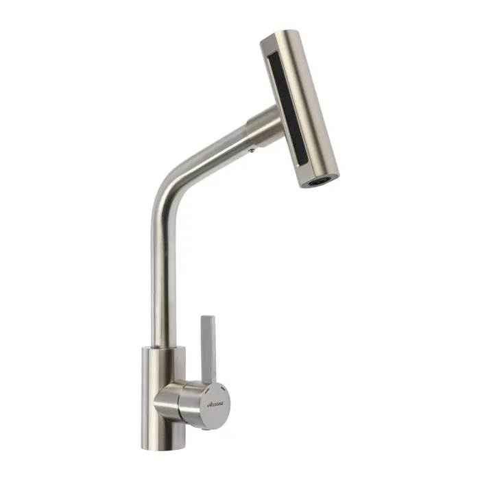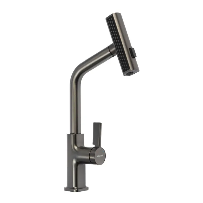 Смеситель для кухни Accoona A5490ST-9, с выдвижной лейкой, латунь, цвет оружейная сталь