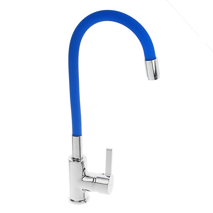Смеситель для кухни Accoona A9890M, однорычажный, силиконовый излив, синий/хром