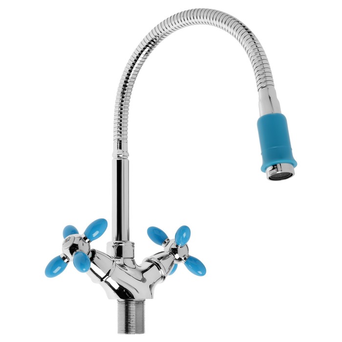 Смеситель для кухни Accoona A4882M-1, двухвентильный, с гибким изливом, синий