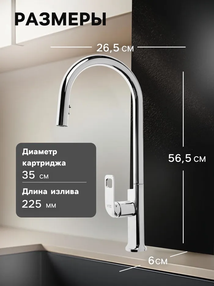 Смеситель для кухни ZEIN Z2482, квадрат, картридж керамика 35 мм, излив 15 см, без подводки