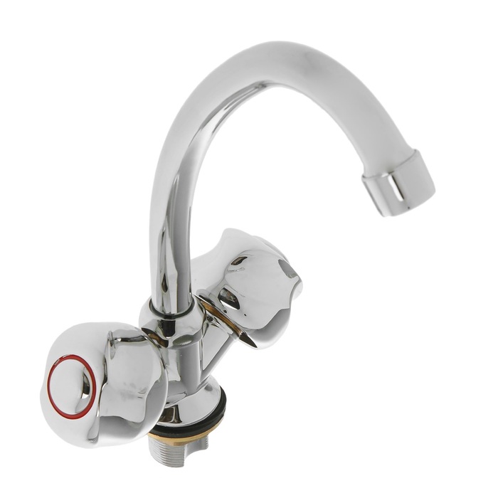 Смеситель для кухни Accoona A4677, двухвентильный, с гайкой, силумин, хром