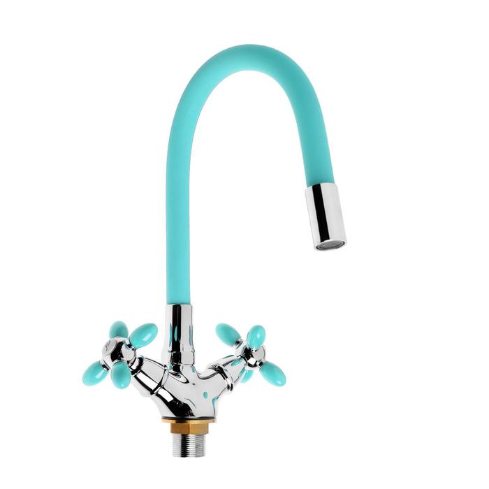 Смеситель для кухни Accoona A4882K-1, двухвентильный, с гибким изливом, голубой