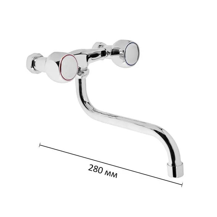 Cмеситель для кухни «Эверест» B46-336, двухвентильный, с круглым изливом, хром